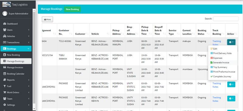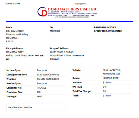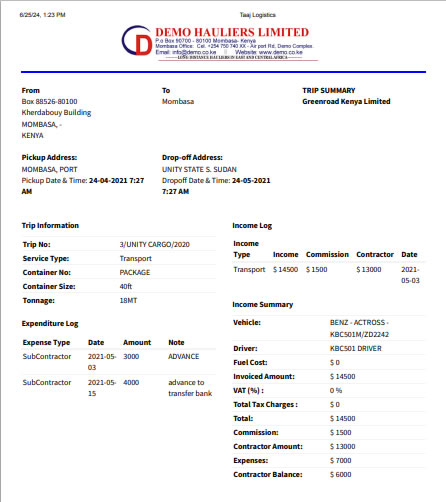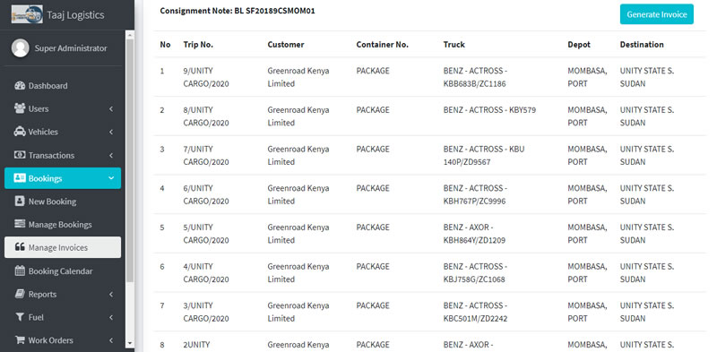 The best fleet management system in Kenya tracks Income and Expenses per trip per truck. All cargo on a single consignment note can be combined to raise a single invoice to the consignee.