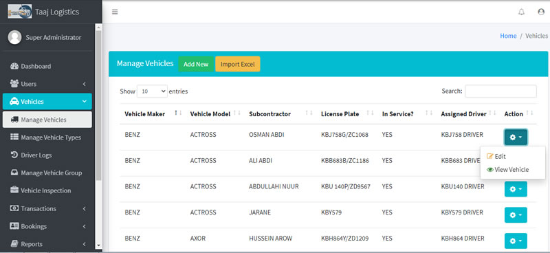 Our Fleet manager is customized for Transport and haulage company that also does Truck owners subcontracting business. The fleet management system assists the management with comprehensive record keeping and information sharing amongst the staff.