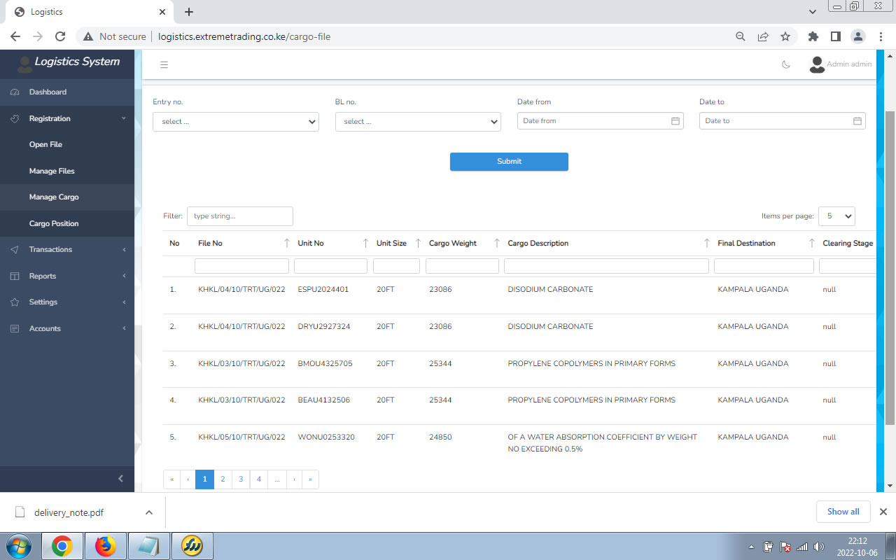We have analysed the business process and documents movement in a clearing and forwarding firm to design and develop this ‘Logistics System’.